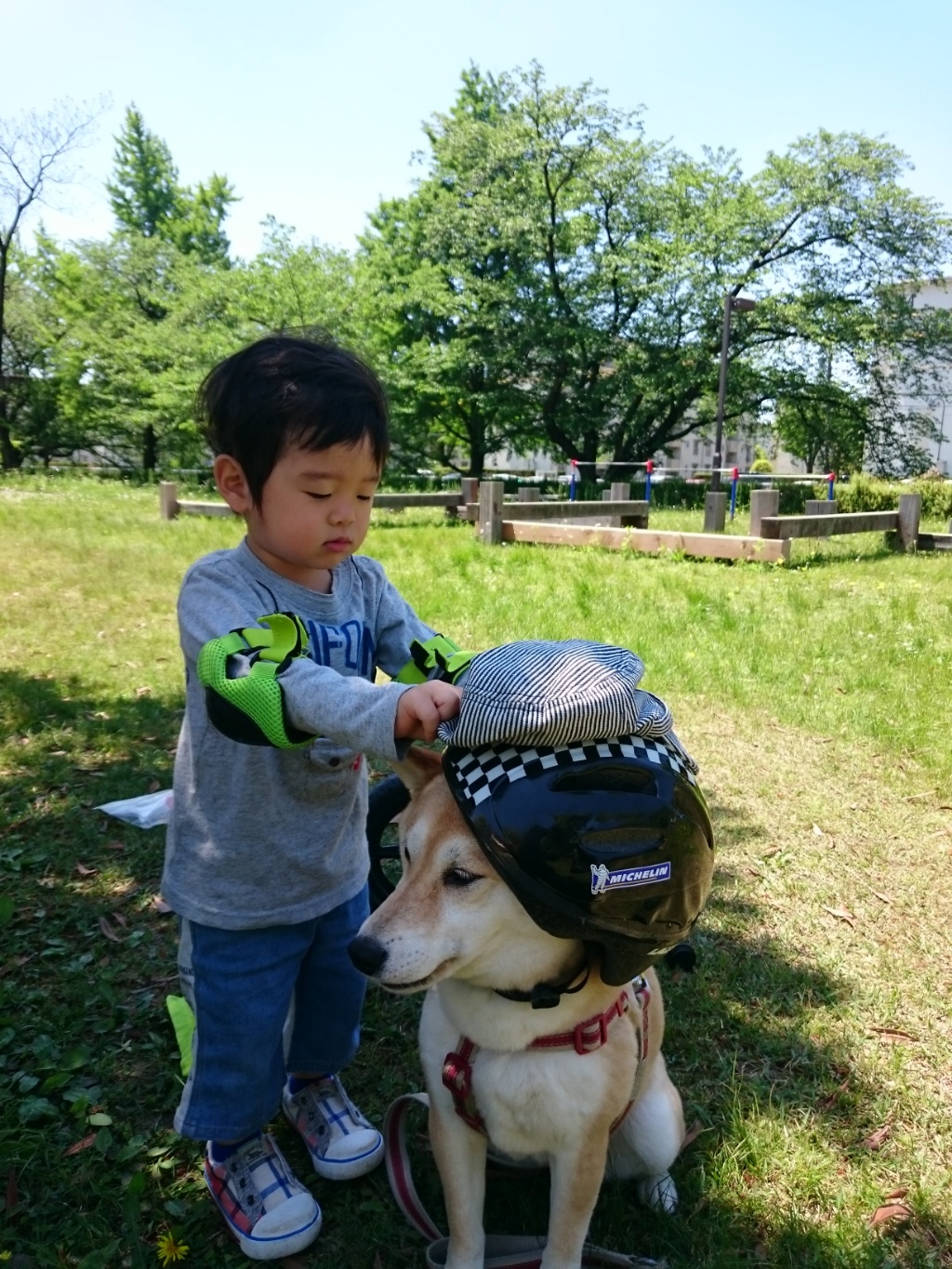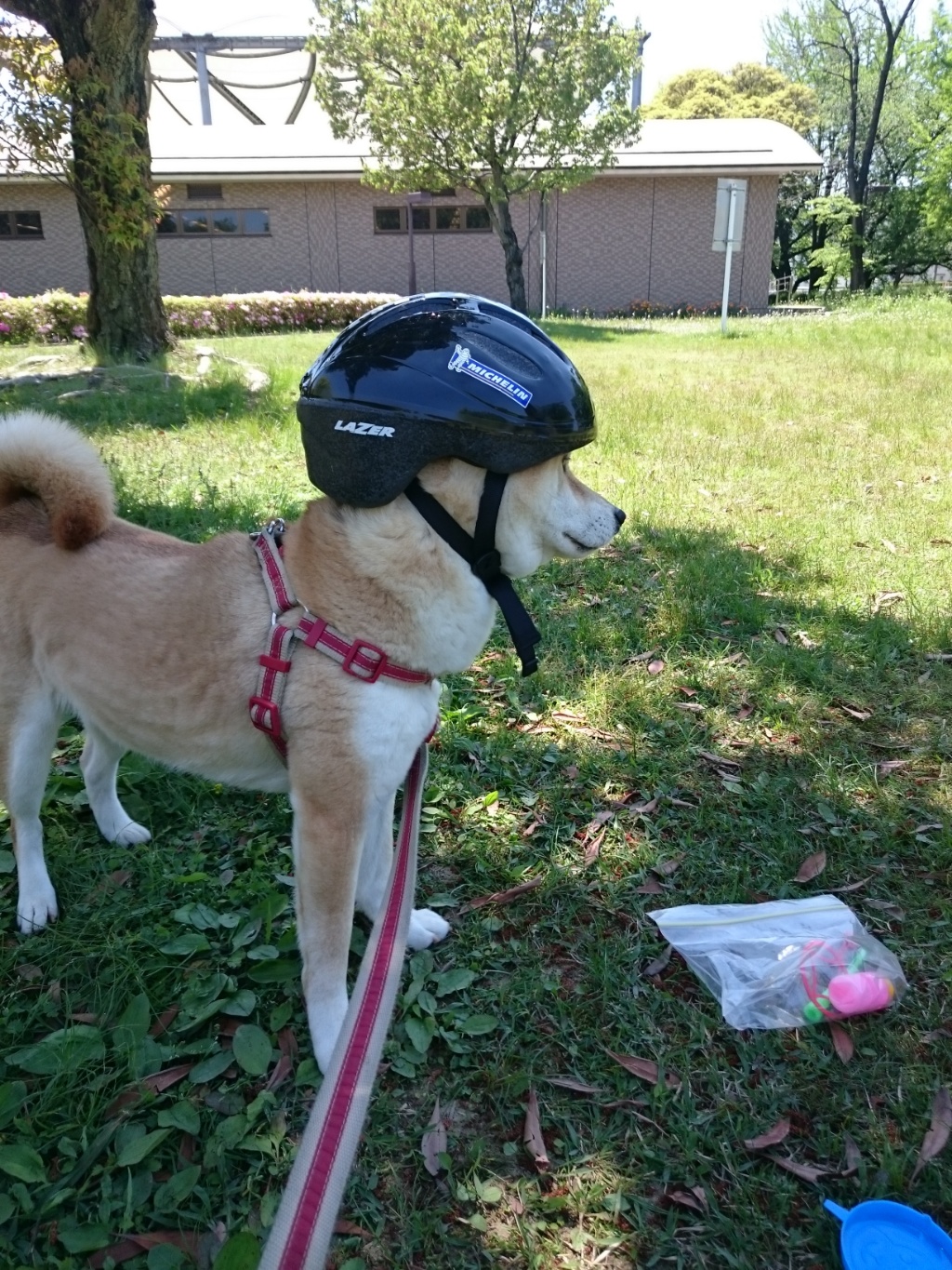 ヘルメットが嫌いなので無理矢理なっちゃんに被せてます。