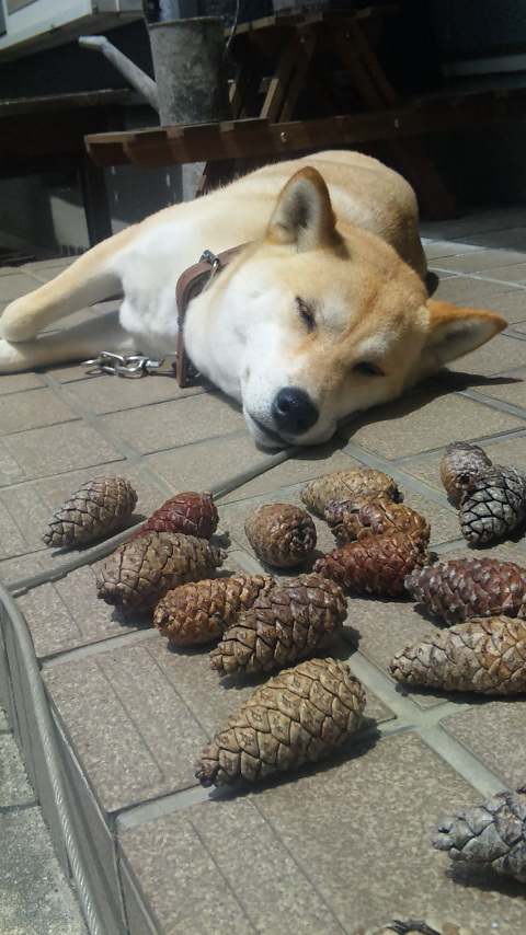 なっちゃんのお散歩のときにコツコツと拾い集めた松ぼっくり。