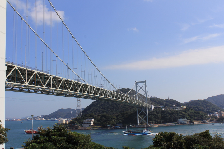 本州と九州を結ぶ関門海峡大橋。