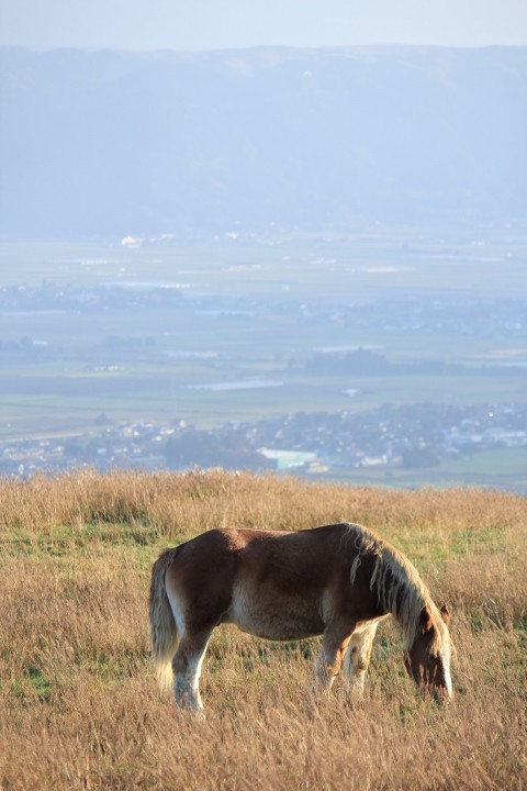 山のあちこちに馬や牛が放牧されていて、なんだか日本じゃないみたい。