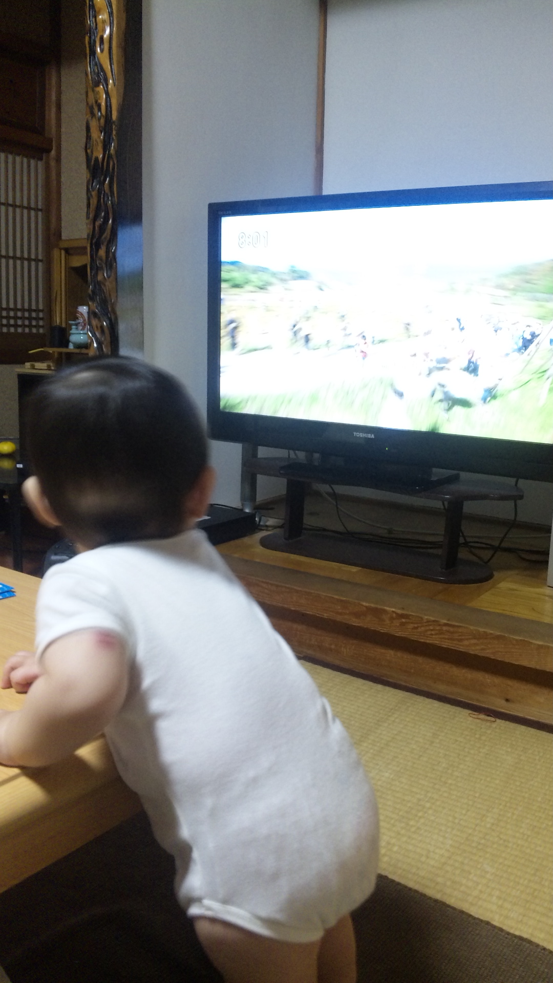 オープニングが始まるとムクリと起き出して、テレビを食い入る