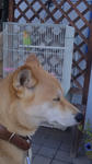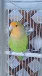 リードをぐいぐい引っ張って、連れてこられたのがピーちゃんのカゴの前。