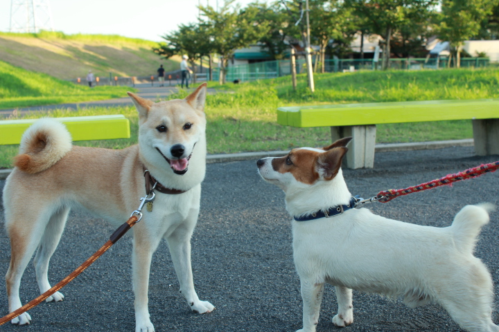 道路の熱がとれるころ、大体18時ごろをメドにお散歩へ。