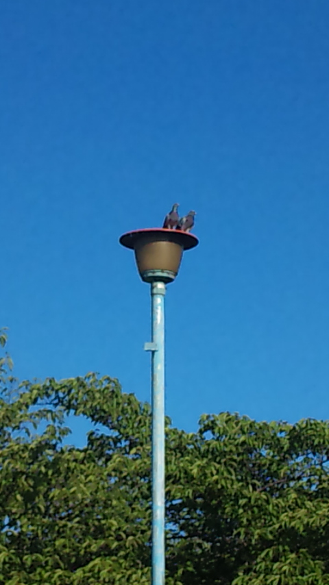 遠くに見えるのは・・・ハトさんだー。