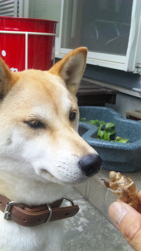 セミの抜け殻を見せても、じーっと見つめるだけの