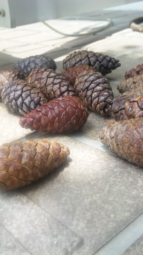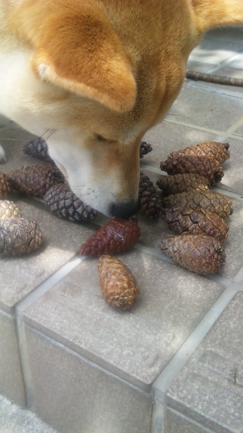 なっちゃんのお散歩のときにコツコツと拾い集めた松ぼっくり。