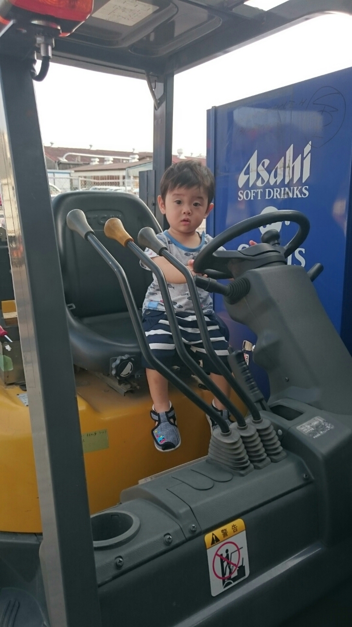 叔父の会社にあるフォークリフトをすかさず見つけて、よっこらしょ(笑)