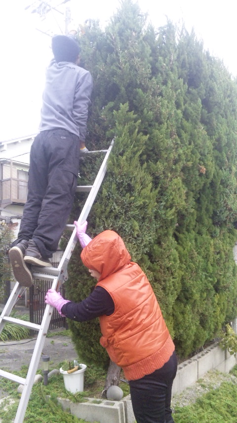 そして・・恒例の森の剪定。庭木は一年であっという間に森