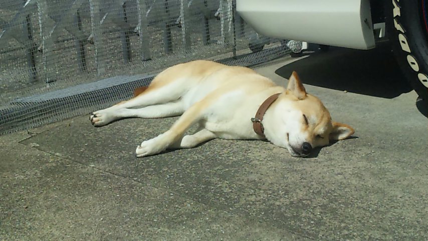 ひなたよ・・・この時期に炎天下で伸びないでおくれ。。。ビックリするじゃん><でも、やっぱりお日様浴びたいのかなw