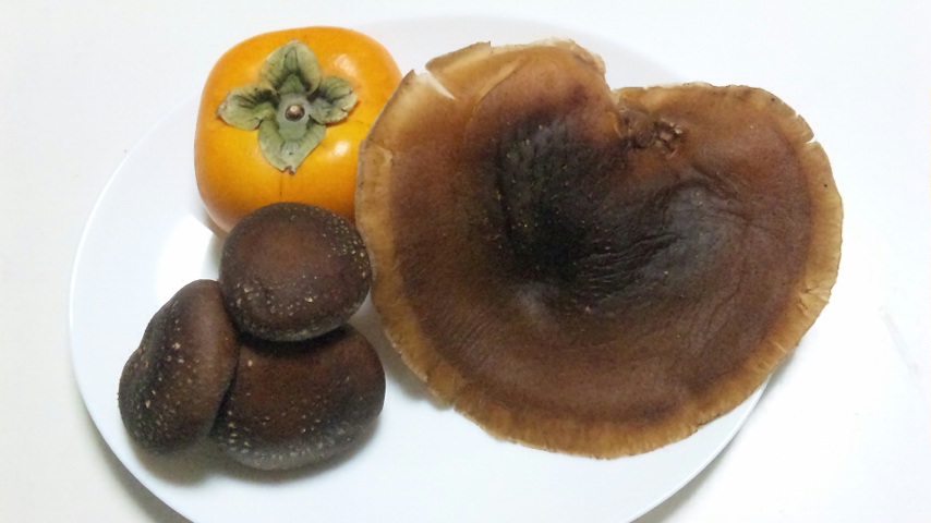 お隣さんの娘さん宅で採れた柿とシイタケです。