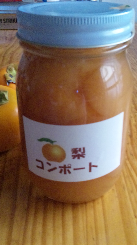 と言ってたら、農業祭でご近所さんが買った梨のコンポートが、