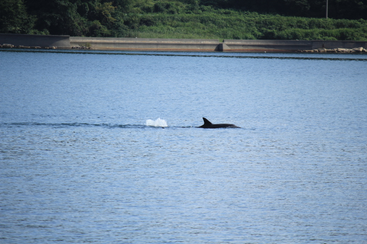 慌てておとっさんの指差す方向を見ると、海面に背びれが!