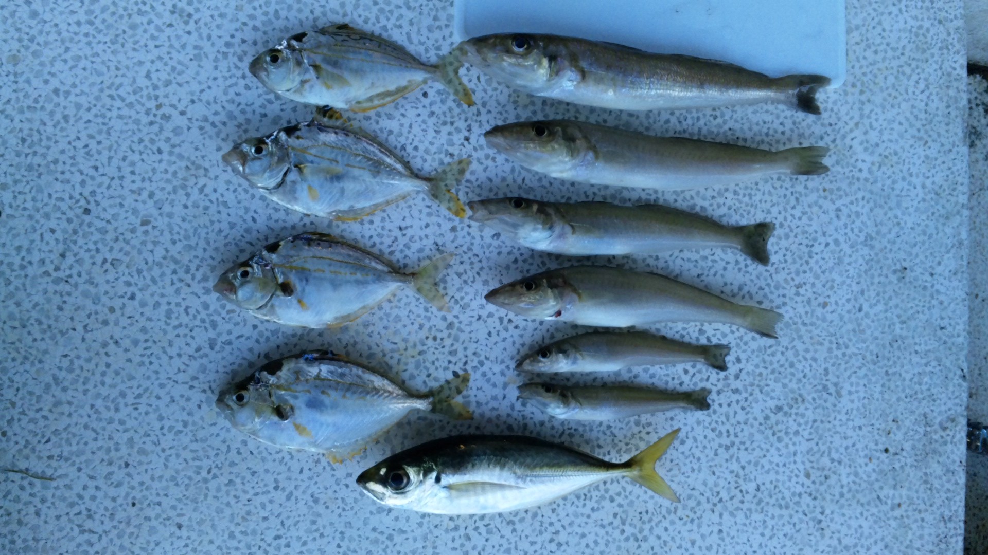 下にあるのはアジ。なぜか投げ釣りで釣れた・・・。