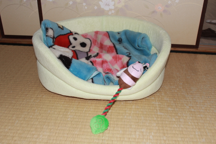 お誕生日プレゼントは夏用のベッドとおもちゃ。