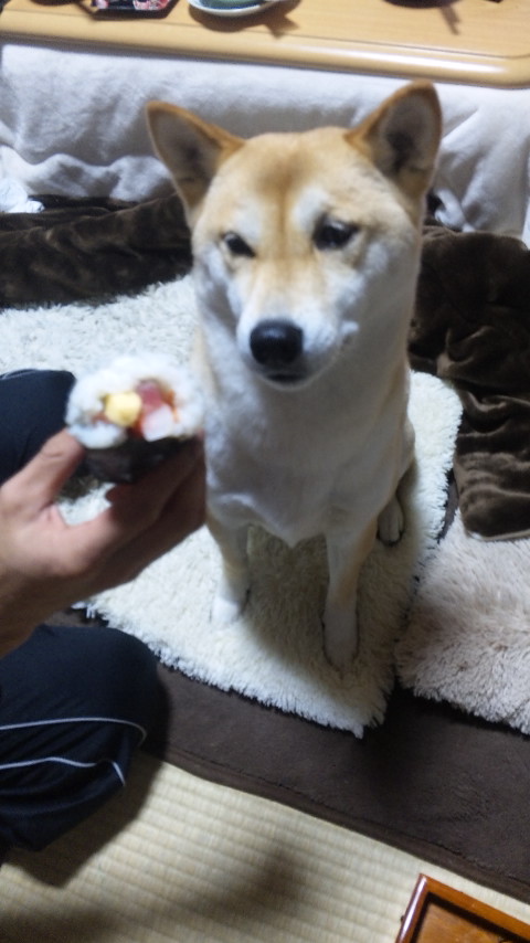 恵方巻をじっと横目で見つめる姿がカワイイ♡