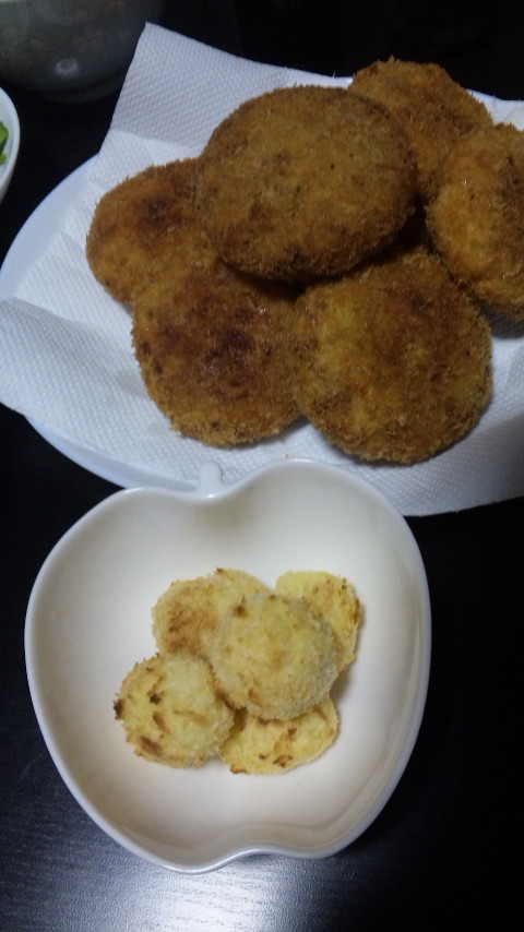 夜ご飯、今夜はコロッケだったので、なっちゃんのコロッケも作って