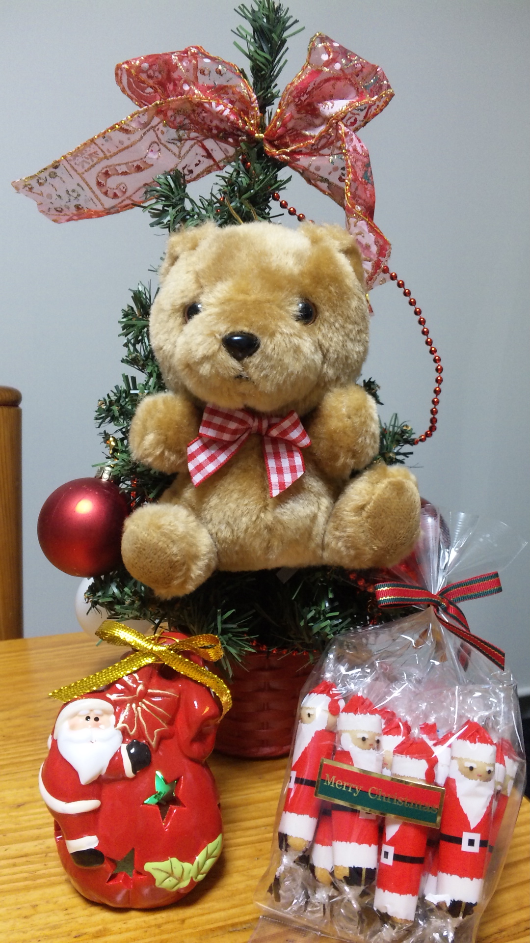 写真のミニツリーは我が家のくまちゃんツリー。
