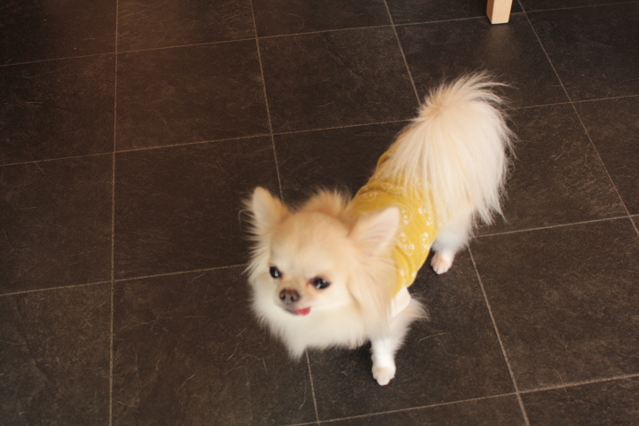 和庵ママさんは看板犬の服も手作りしちゃいます。
