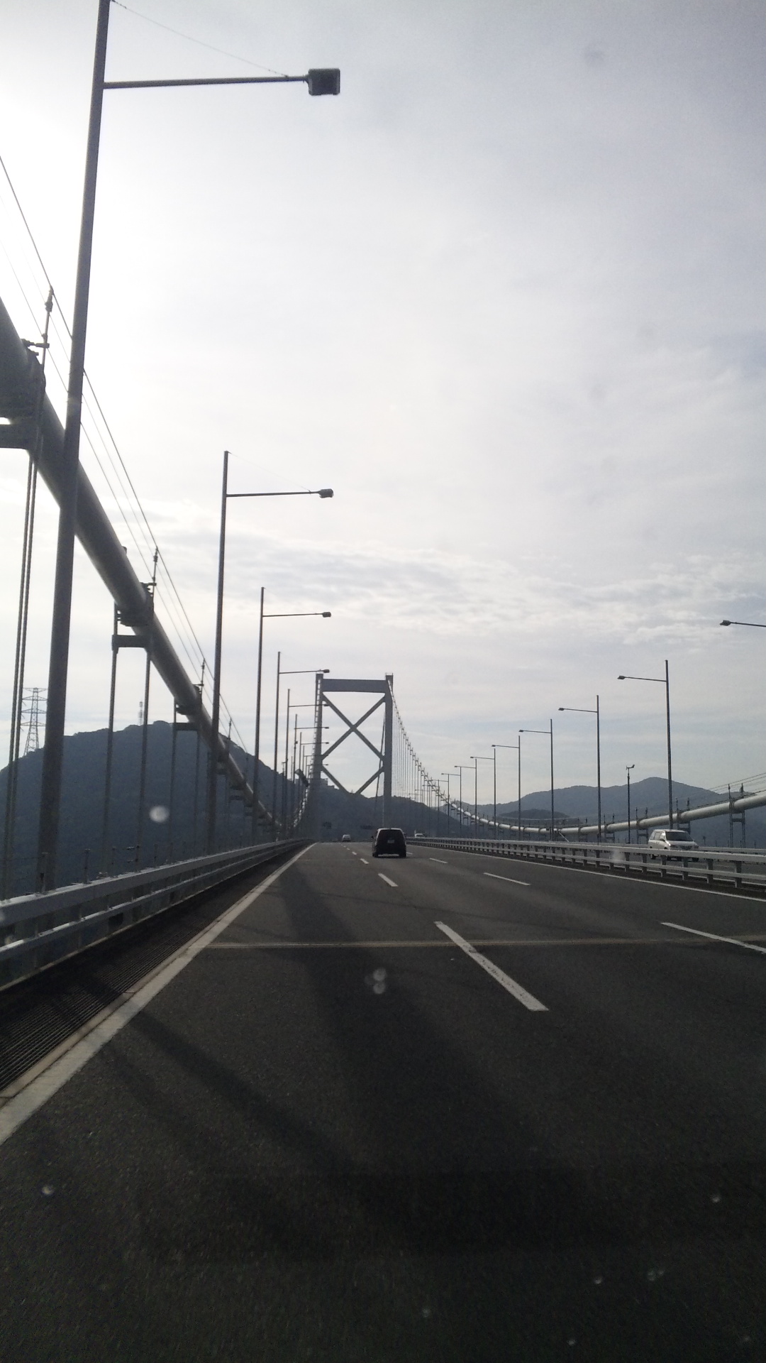 途中道の駅でお土産を買ったり、明石海峡大橋の下で