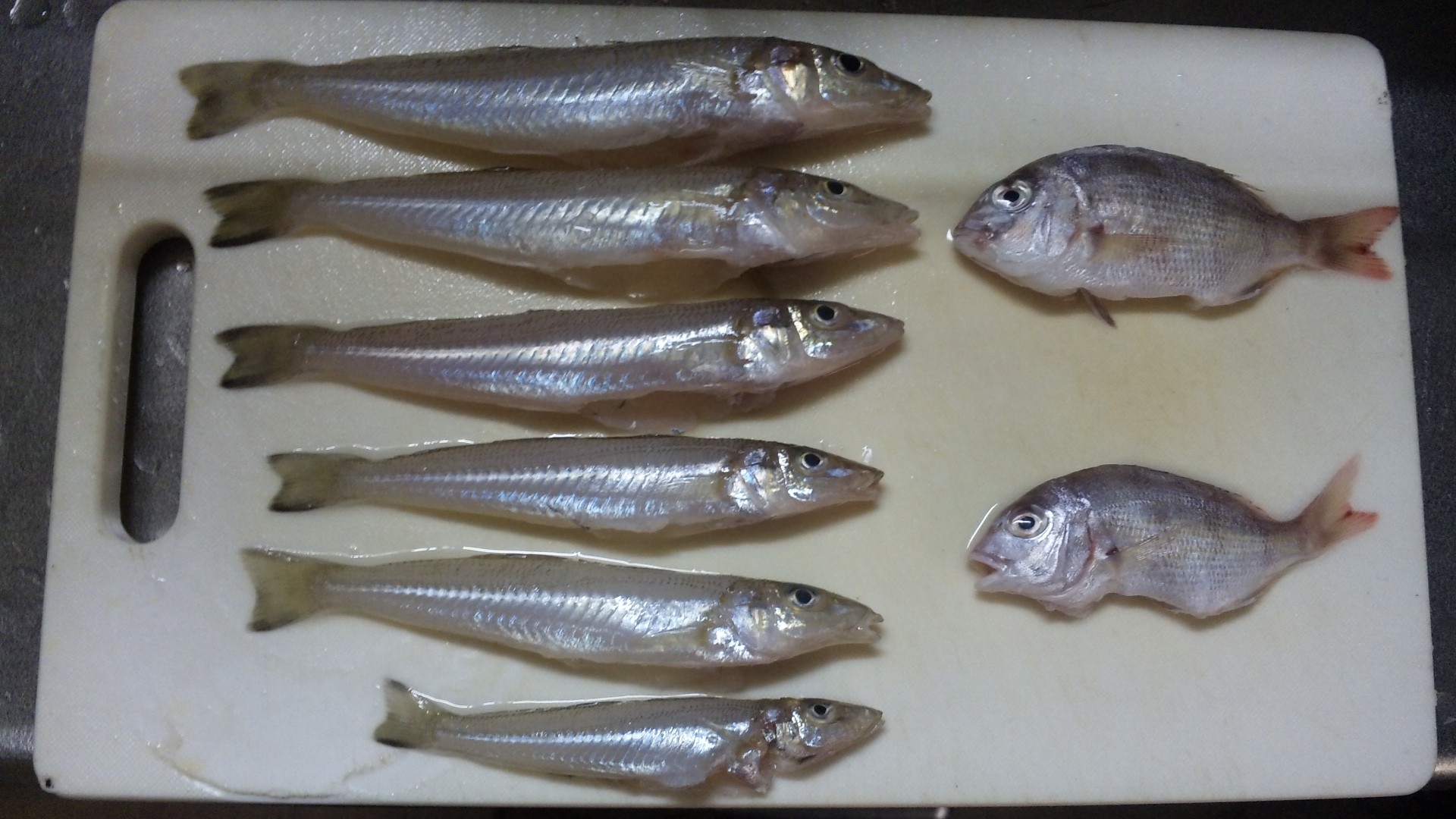 結局この夜釣れたのは、タコにアナゴ、キスとチャリコ。 キスが釣りたいと父が言っていたので
