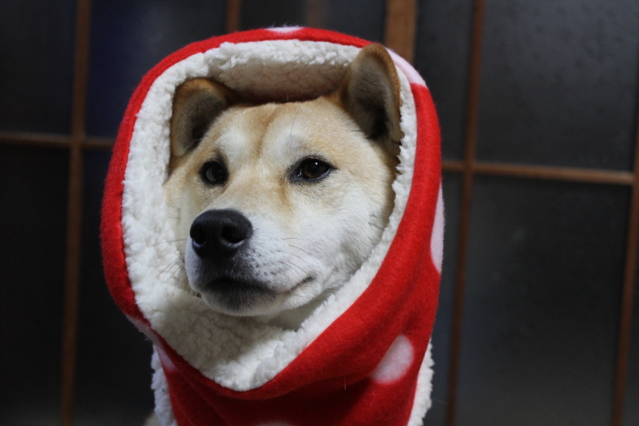 小さい頃からずっと家の中で飼っているから、すっかり寒がりな犬になってしまったよ。