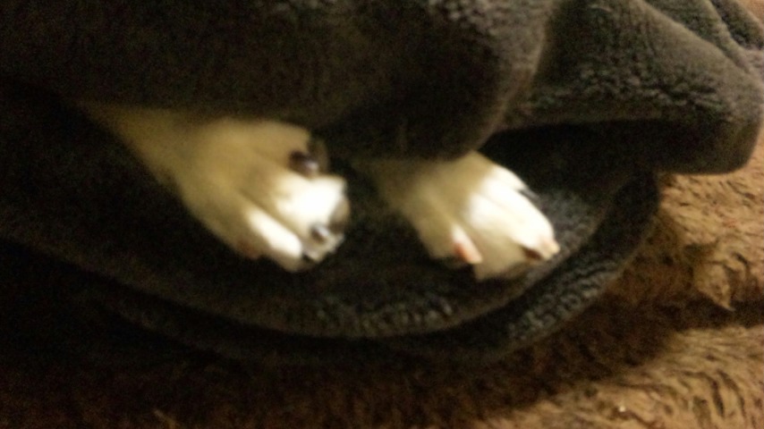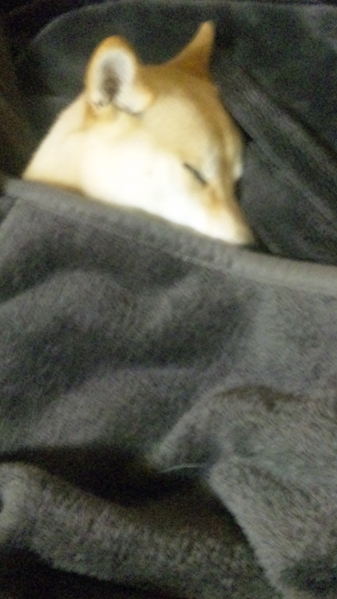 ありゃりゃ、毛布にかくれんぼ。