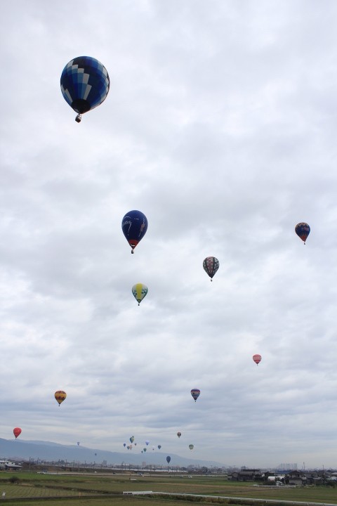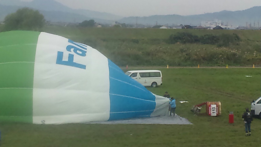 大会初日は、あいにくの天気のため、各方々から熱気球を会場に飛ばす
