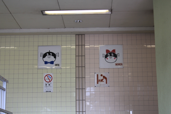 そうそう、ここにあるトイレの表示がフグちゃんに。