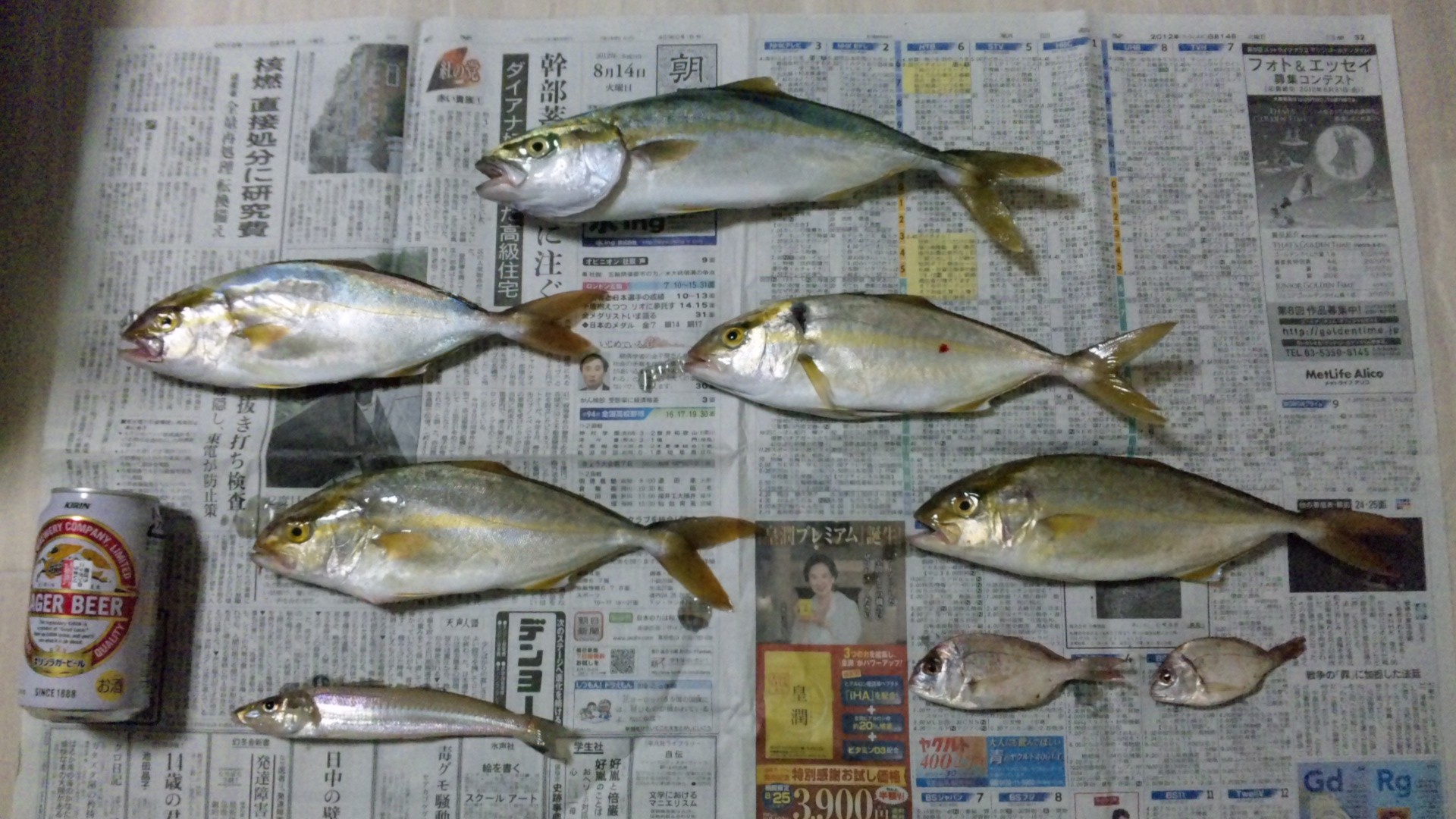 どうやら釣れた魚は「シオ」だそうです。 カンパチの子供なんだと、お一人様が親切にも