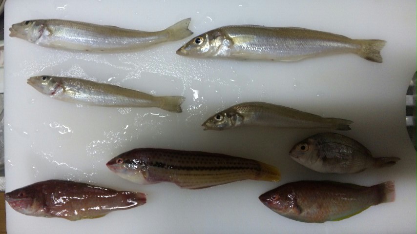 釣果:キス7匹、セイゴ3匹、チャリコ1匹、ハゼ4匹、