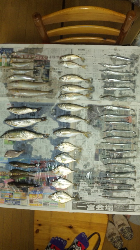 アジ8匹ヒイラギ5匹、サヨリ20匹