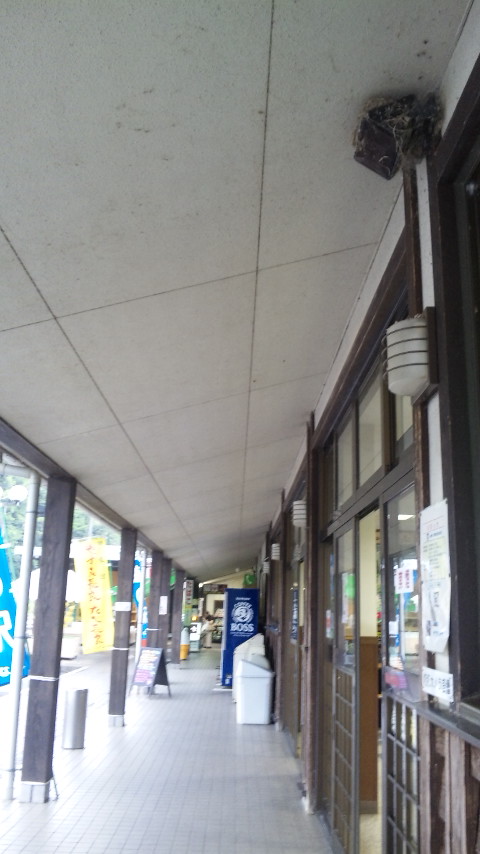 いつものお気に入りの道の駅 「みなみ」に、ツバメの巣を見つけたらしい。