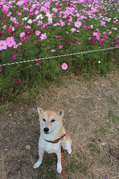 いいねいいね~、コスモス畑見ながらオヤツが食べたいねー。