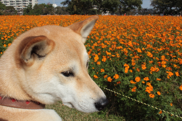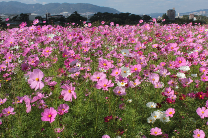 で、本題ですが、先日近所のコスモス畑に行きました。