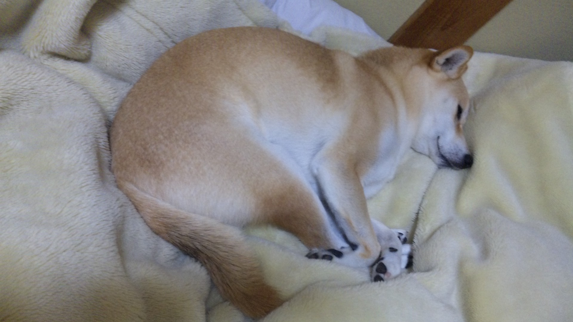 最近はこんな雪ダルマ状態でネンネすることも多くなりました。