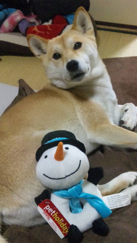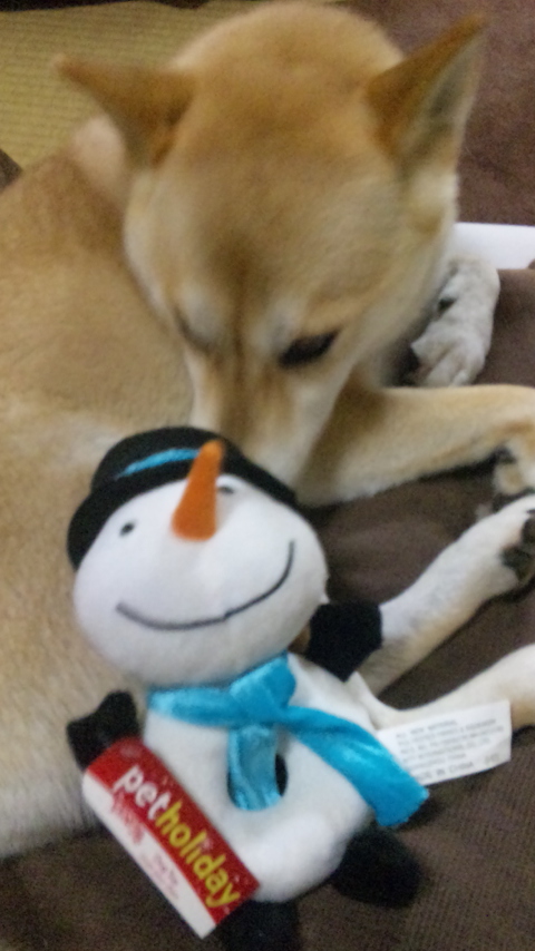 なっちゃんにはスノーマンのぬいぐるみ。 押すとピヨピヨ。