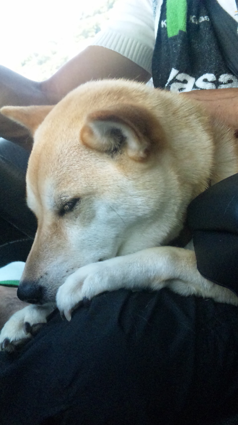 おひざの上でウトウトするなっちゃん。