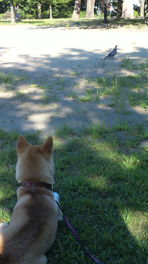 遠くに見えるのは・・・ハトさんだー。