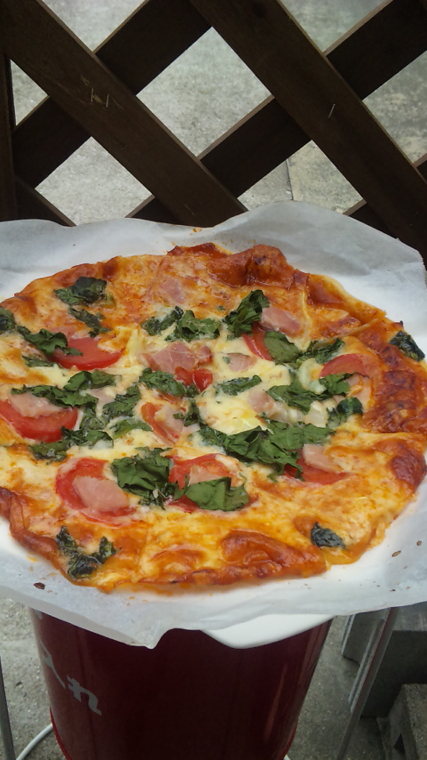 お昼にお隣さんが自宅庭でバーベキューをしていたので、ピザの差し入れをしたら、