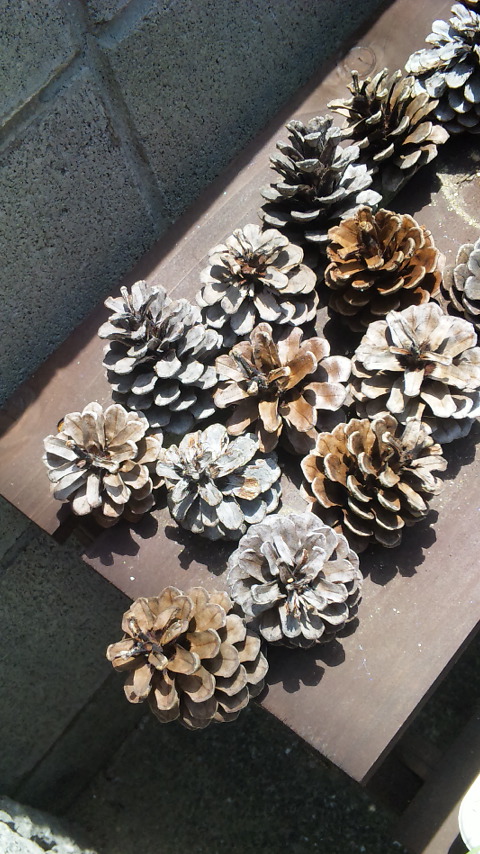 なっちゃんのお散歩のときにコツコツと拾い集めた松ぼっくり。