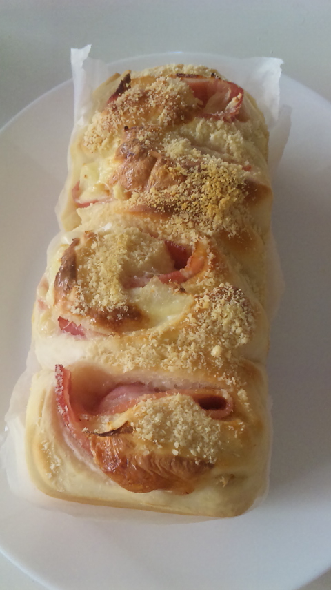 ちなみに焼き上げ前に粉チーズをふりかけてます。