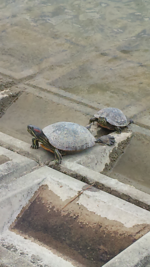 いつも仲のいいカモさん&アヒルさんがいる場所まで戻って