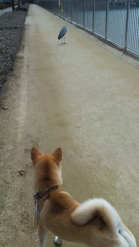 なっちゃん、鳥を見つけた瞬間、固まってしまいました。
