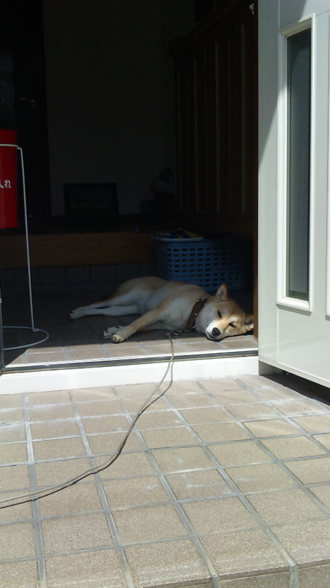 玄関でぐったりです。 ヒマなのはわかるけど・・。