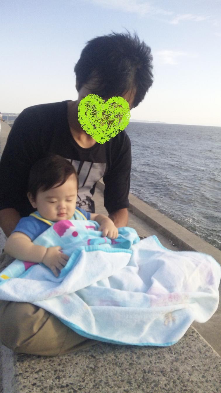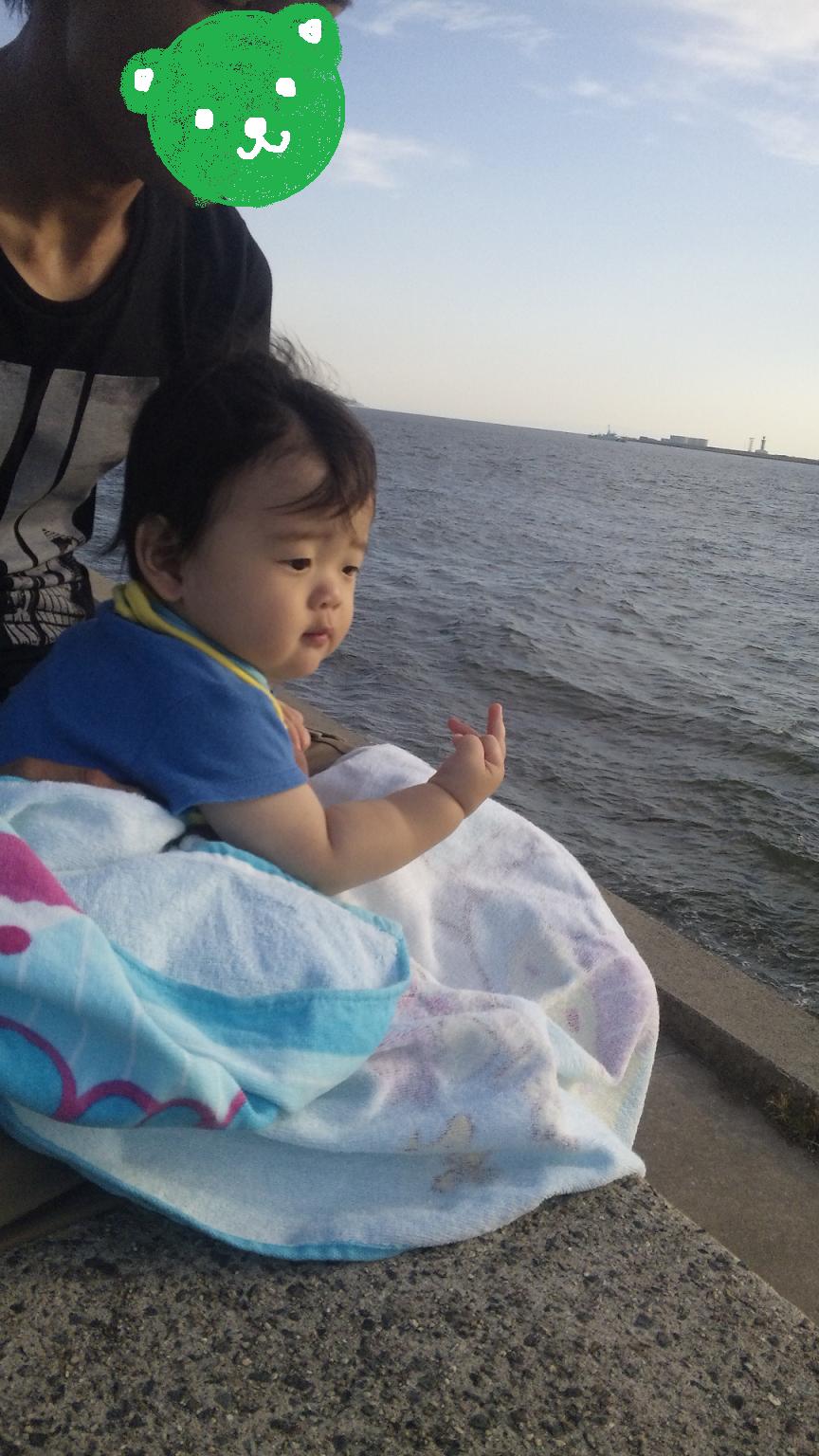 話は変わりまして先日初めて海に連れて行きました。