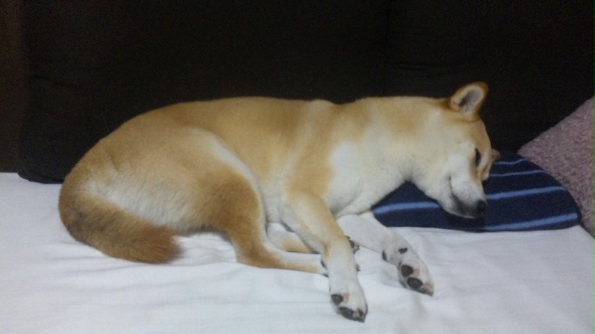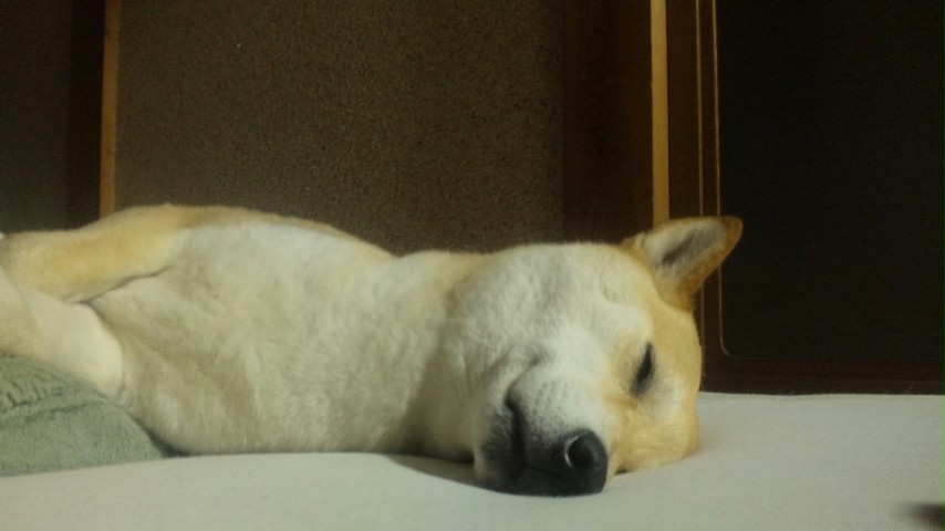 寝言をいってました。夢の中でも走りまわってたのかな。