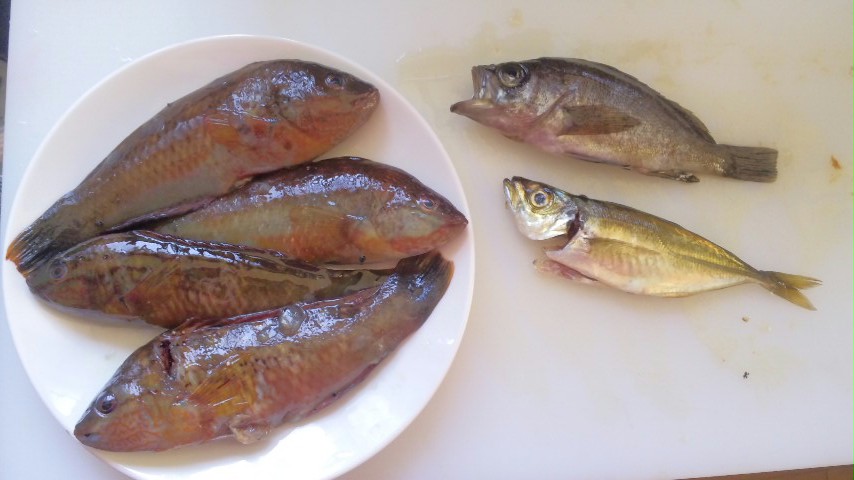 ベラが4匹とメバル、アジ。